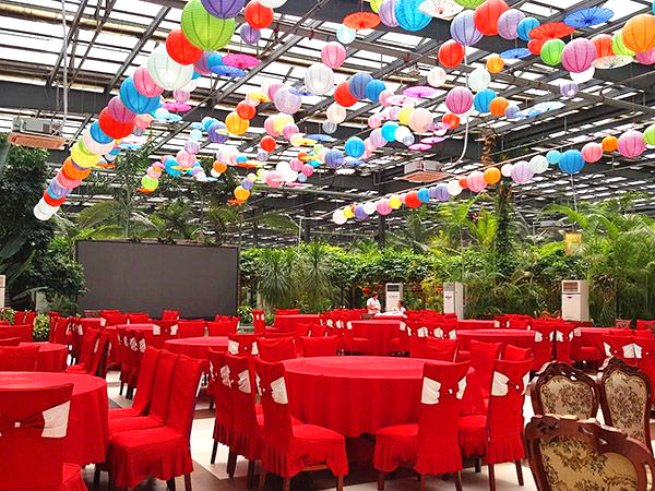我公司承建的生態(tài)餐廳,克服了種植溫室“易結(jié)露、視野小”的弊端,以“大空間、環(huán)?!睘楦拍睿O(shè)計(jì)開發(fā)了高屋脊、大跨度、大開間的專用類型,有1688型(棟寬16米,柱高8米、開間8米)和120型(棟寬12米、柱高6米、開間4米),覆蓋材料采用玻璃或PC板,外觀造型美觀,恢宏大氣,內(nèi)部視野開闊,寬尚明亮。置身于其中,既能感受田園的韻味,又能享受美味佳肴。